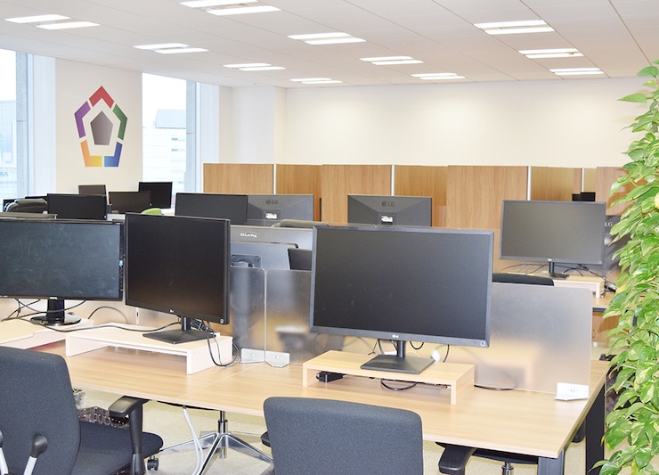 出社人数が10分の1に減り空席が目立つ当社執務室エリア