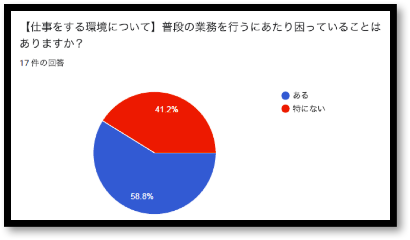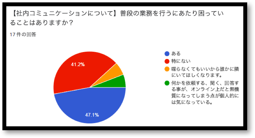 当社の社員アンケートでも半数以上がコミュニケーションに困っていると回答した。